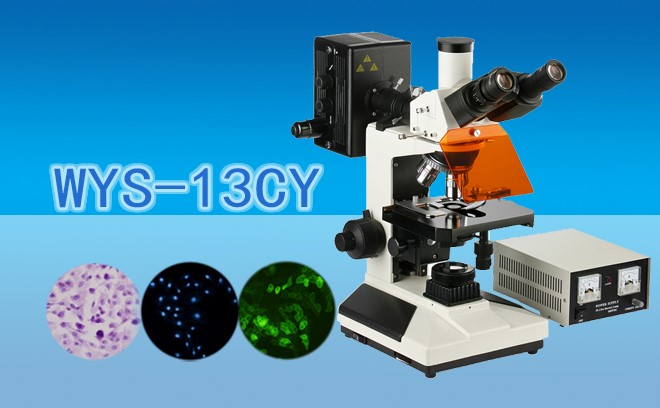 三目荧光显微镜WYS-13CY适用于荧光显微观察和透射明视场观察,可以清楚地观察和鉴定用普通显微镜难以观察到染色体标本,是生物学、细胞学、肿瘤学、遗传学、改性沥青、材料科学等研究工作的理想仪器??晒┛蒲?、高校、医疗和防疫等部门使用。总放大倍数:40X-1000X